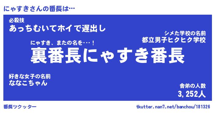 | ヒーロー風カッコイイあだ名 | 『スーパーニャスキ』『天弓騎士ニャ』 |