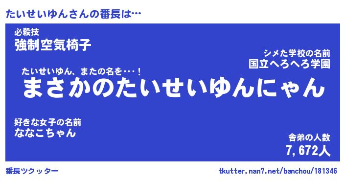 | 肩書あだ名 | 『たいせいゆん社長』『たいせいゆん担任』 |