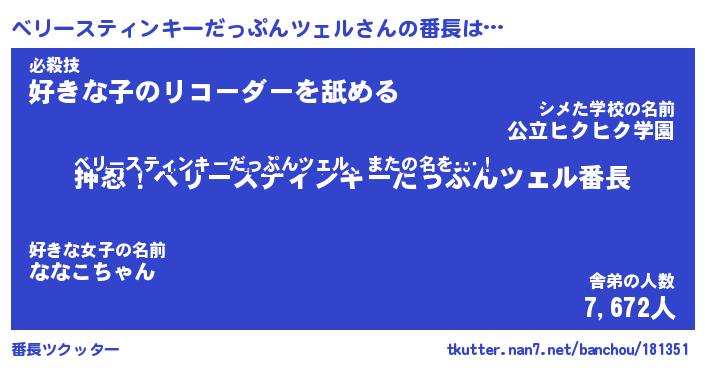 | 2回繰り返すあだ名 | 『ベリベリ』『ベベリリ』『ぬらぬら』 |