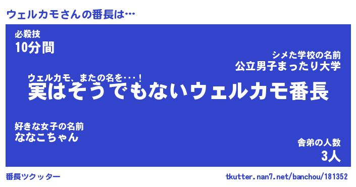 | ファンタジー風あだ名 | 『ウェフェル』『エターナルウェルカモー』 |