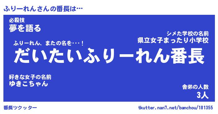 | 肩書あだ名 | 『ふりーれん御曹司』『ふりーれん大統領』 |
