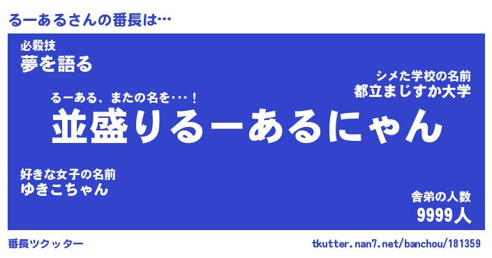 | 肩書あだ名 | 『るーある店長』『るーある国家主席』 |