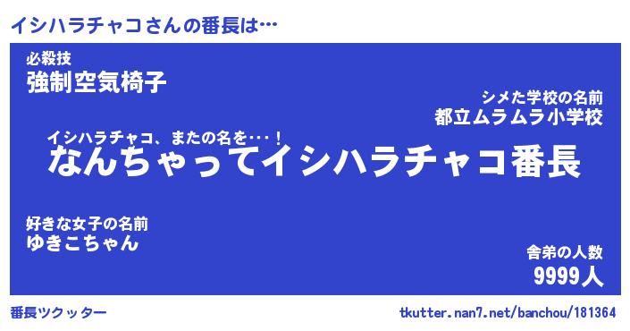 | 欧米人風あだ名 | 『マイケルイシハラチャコ』 |