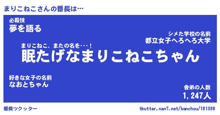 | 肩書あだ名 | 『まりこねこ店長』『まりこねこ総理大臣』 |