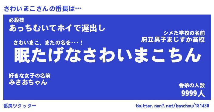| ピコ太郎風あだ名 | 『サコ六郎』『ピサ三郎』『サワ十郎』 |
