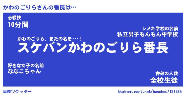 | ヒーロー風カッコイイあだ名 | 『スーパーカワノゴリラ』『暗黒騎士カワ』 |