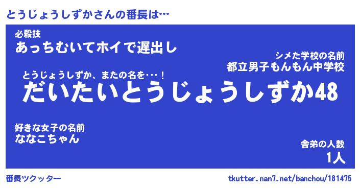 | ヒーロー風カッコイイあだ名 | 『スーパートウジョウシズカ』 |