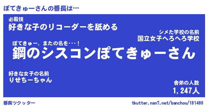 | 肩書あだ名 | 『ぽてきゅー御曹司』『ぽてきゅー大統領』 |
