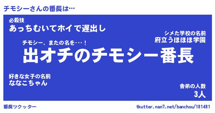 | ポケモン風あだ名 | 『チモチュウ』『チモシダネ』 |