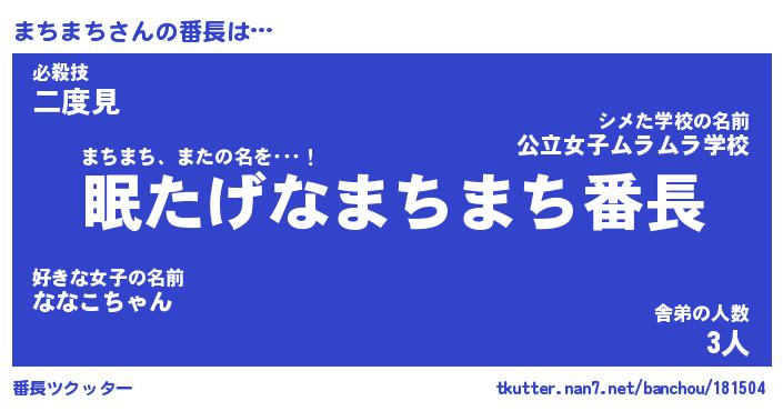 | 意味不明あだ名 | 『ペロリンまちまち』『永久保存まちまち』 |