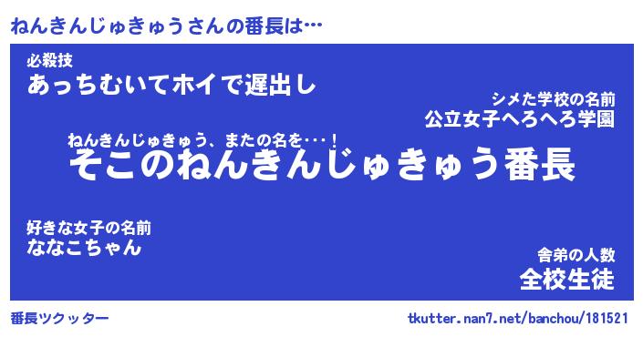 | ヒーロー風カッコイイあだ名 | 『スーパーネンキンジュキュウ』 |