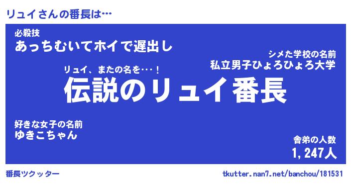 | ヘコむあだ名 | 『リュにゅー』『レバニラ』 |