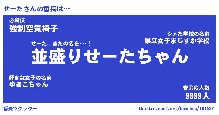 | 意味不明あだ名 | 『ペロリンせーた』『せーたフォーエバー』 |