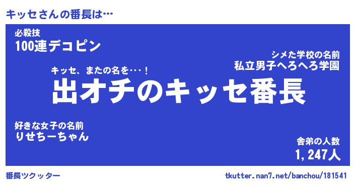 | ヒーロー風カッコイイあだ名 | 『スーパーキッセ』『ウルトラキッセマン』 |