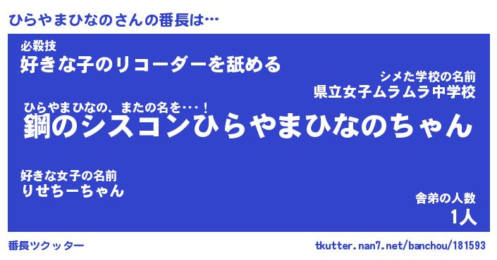 ひらやまひなのさんの番長をツクッター!