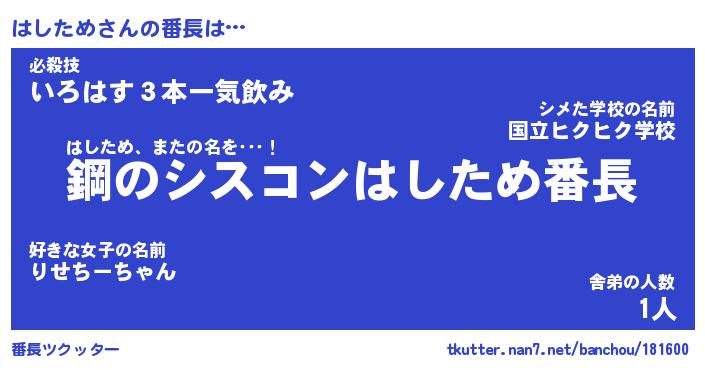 | ファンタジー風あだ名 | 『ハシフェル』『エターナルハシタメー』 |