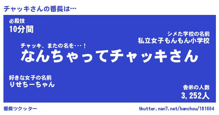 | ヒーロー風カッコイイあだ名 | 『スーパーチャッキ』『幻影騎士チャ』 |