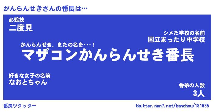 | ヒーロー風カッコイイあだ名 | 『スーパーカンランセキ』『魔戒騎士カン』 |