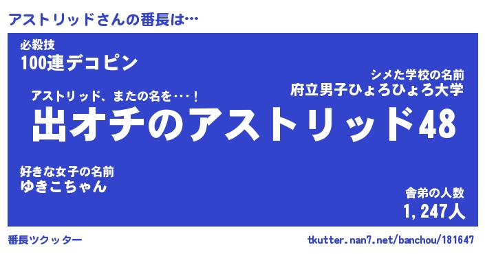 | 意味不明あだ名 | 『ペロリンアストリッド』 |