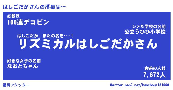 | ピコ太郎風あだ名 | 『ハコ六郎』『ピハ二郎』『ハシ次郎』 |