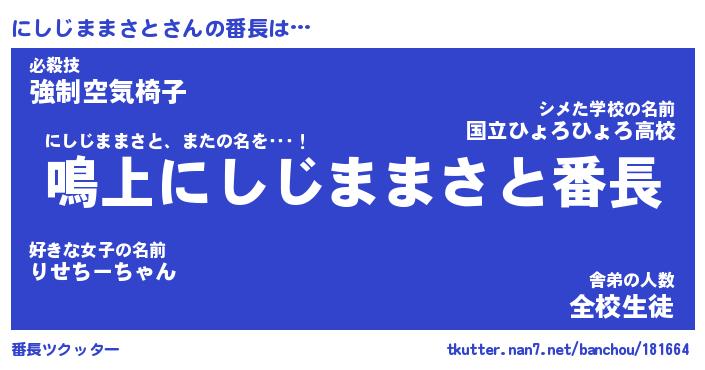 | ポケモン風あだ名 | 『ニシチュウ』『ニシジダネ』 |