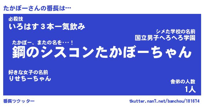 | ヒーロー風カッコイイあだ名 | 『スーパータカボー』『幻影騎士タカ』 |