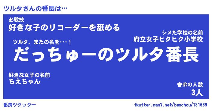 | ファンタジー風あだ名 | 『ツルフェル』『エターナルツルター』 |
