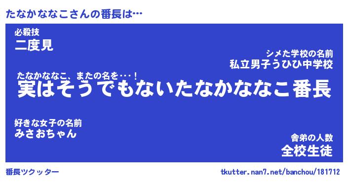 | 伝説のあだ名 | 『封印されしスナイパーたなかななこ』 |