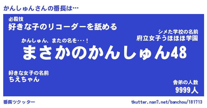 | ポケモン風あだ名 | 『カンチュウ』『カンシダネ』 |