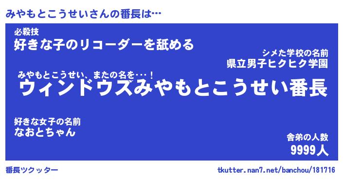 | 肩書あだ名 | 『みやもとこうせい店長』 |