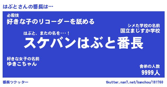 | ポケモン風あだ名 | 『ハブチュウ』『ハブトダネ』 |