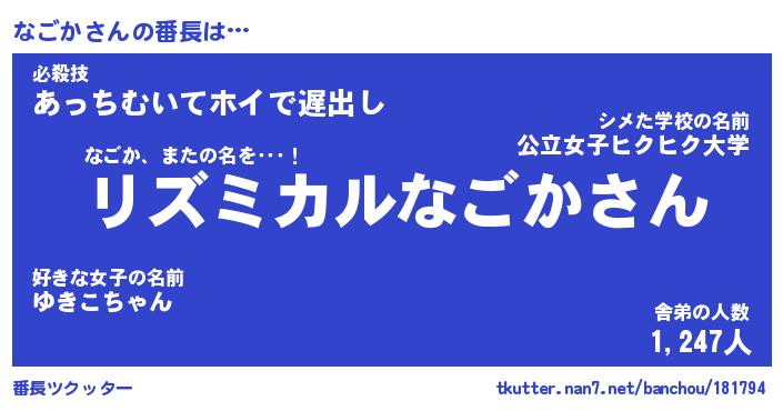 | 意味不明あだ名 | 『ペロリンなごか』『なごかフォーエバー』 |