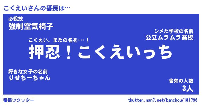 | 肩書あだ名 | 『こくえい店長』『こくえい総理大臣』 |