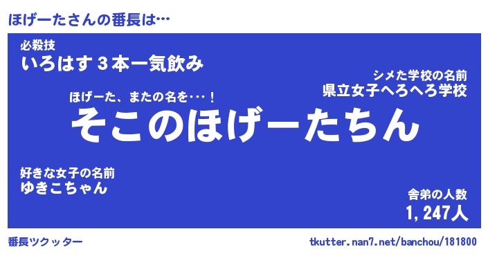 | 意味不明あだ名 | 『ペロリンほげーた』『永久保存ほげーた』 |
