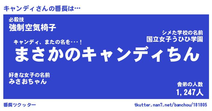 | 伝説のあだ名 | 『伝説のスナイパーキャンディ』 |