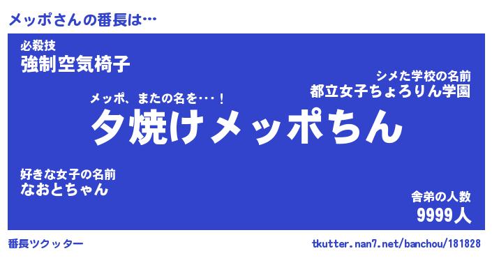 | ヒーロー風カッコイイあだ名 | 『スーパーメッポ』『ウルトラメッポマン』 |