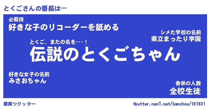 | ファンタジー風あだ名 | 『トクフェル』『エターナルトクゴー』 |