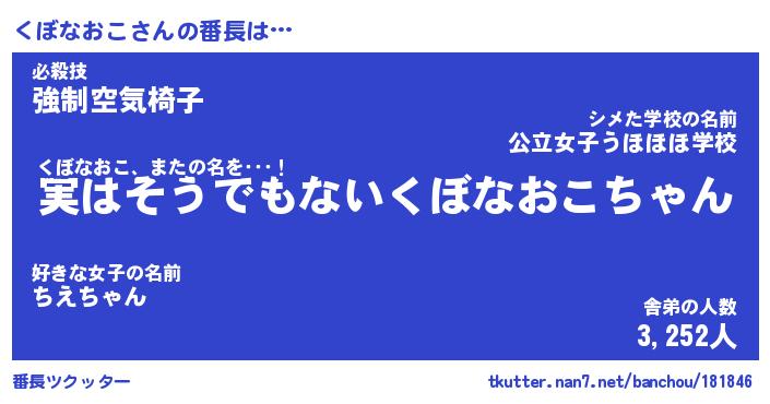 | 伝説のあだ名 | 『封印されし竜騎士くぼなおこ』 |