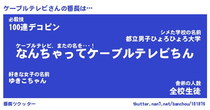 | 肩書あだ名 | 『ケーブルテレビ店長』 |
