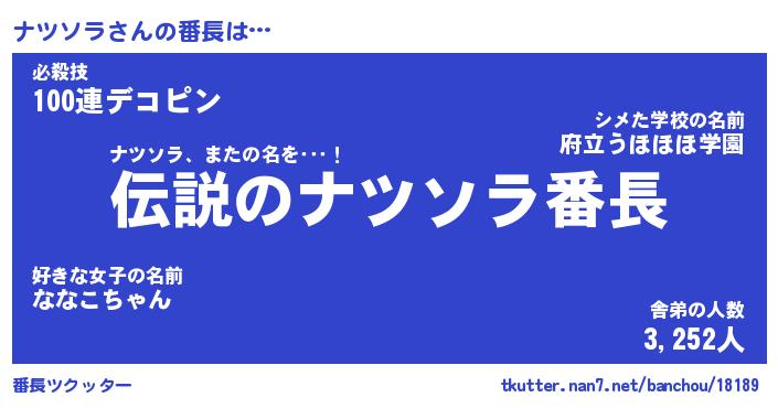| 伝説のあだ名 | 『伝説のスナイパーナツソラ』 |