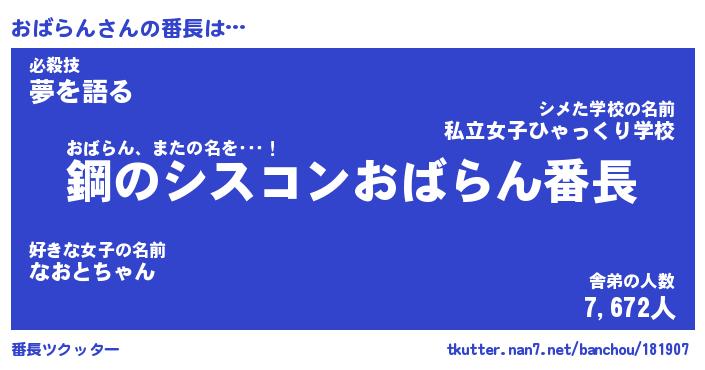 | 意味不明あだ名 | 『ペロリンおばらん』『永久保存おばらん』 |