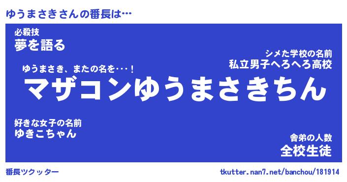 | ファンタジー風あだ名 | 『ユウフェル』『エターナルユウマサキー』 |