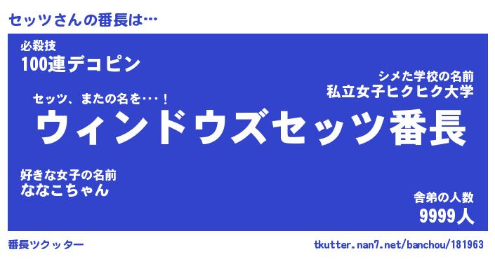 | ファンタジー風あだ名 | 『セッフェル』『エターナルセッツー』 |