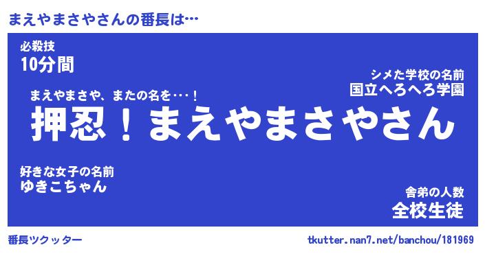 | 伝説のあだ名 | 『封印されしスナイパーまえやまさや』 |