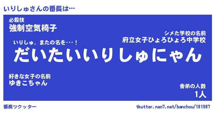 | 肩書あだ名 | 『いりしゅCEO』『いりしゅ総理大臣』 |