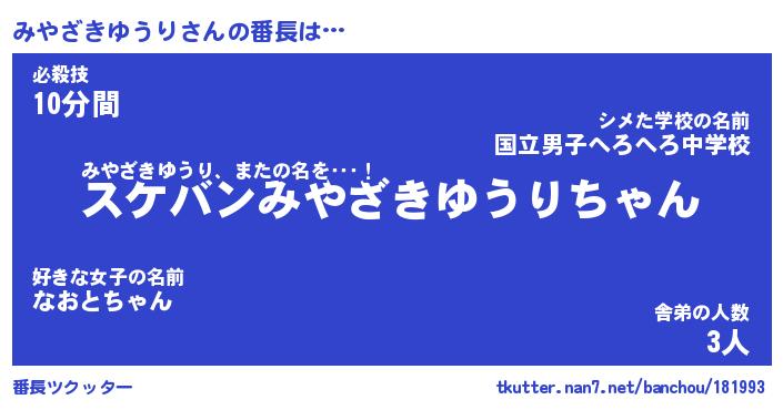 | ヒーロー風カッコイイあだ名 | 『スーパーミヤザキユウリ』 |