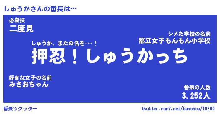 | 意味不明あだ名 | 『ペロリンしゅうか』『永久保存しゅうか』 |