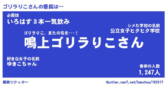 | ピコ太郎風あだ名 | 『ゴコ六郎』『ピゴ一郎』『ゴリ六郎』 |