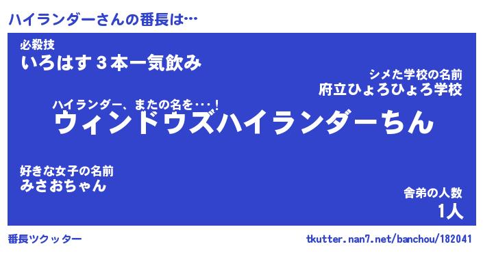 | 意味不明あだ名 | 『ペロリンハイランダー』 |