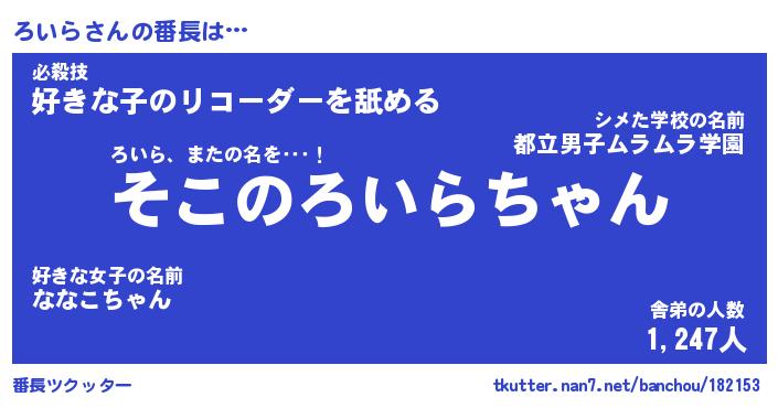| 肩書あだ名 | 『ろいら店長』『ろいら大統領』 |